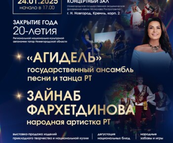 24 января (в пятницу) в 17:00 в Нижегородском Кремлевском концертном зале Концерт мастеров искусств Республики Татарстан, посвященный 20-летию Региональной национально-культурной автономии татар Нижегородской области! В программе:…