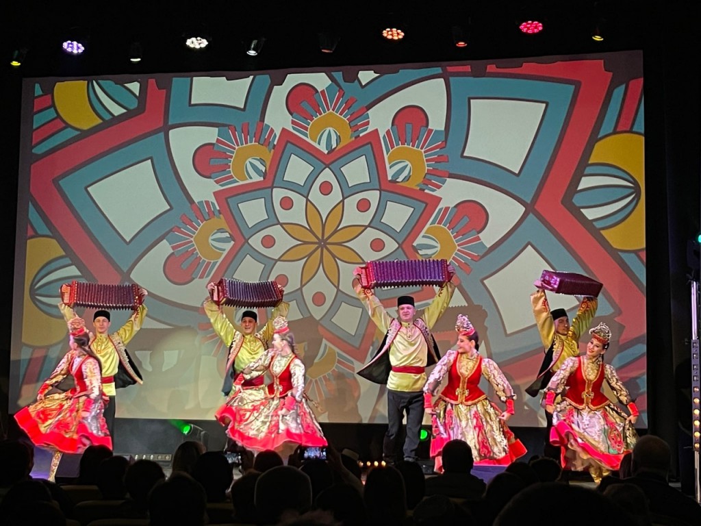 Красивая встреча гостей в фойе с традиционными угощениями и песнями, яркие номера артистов на сцене и фееричное выступление приглашенных артистов из Казанской государственной филармонии — ансамбля танца «Казань», солистов Алмаза Хасанова и Лэйсэн Сунагатовой.