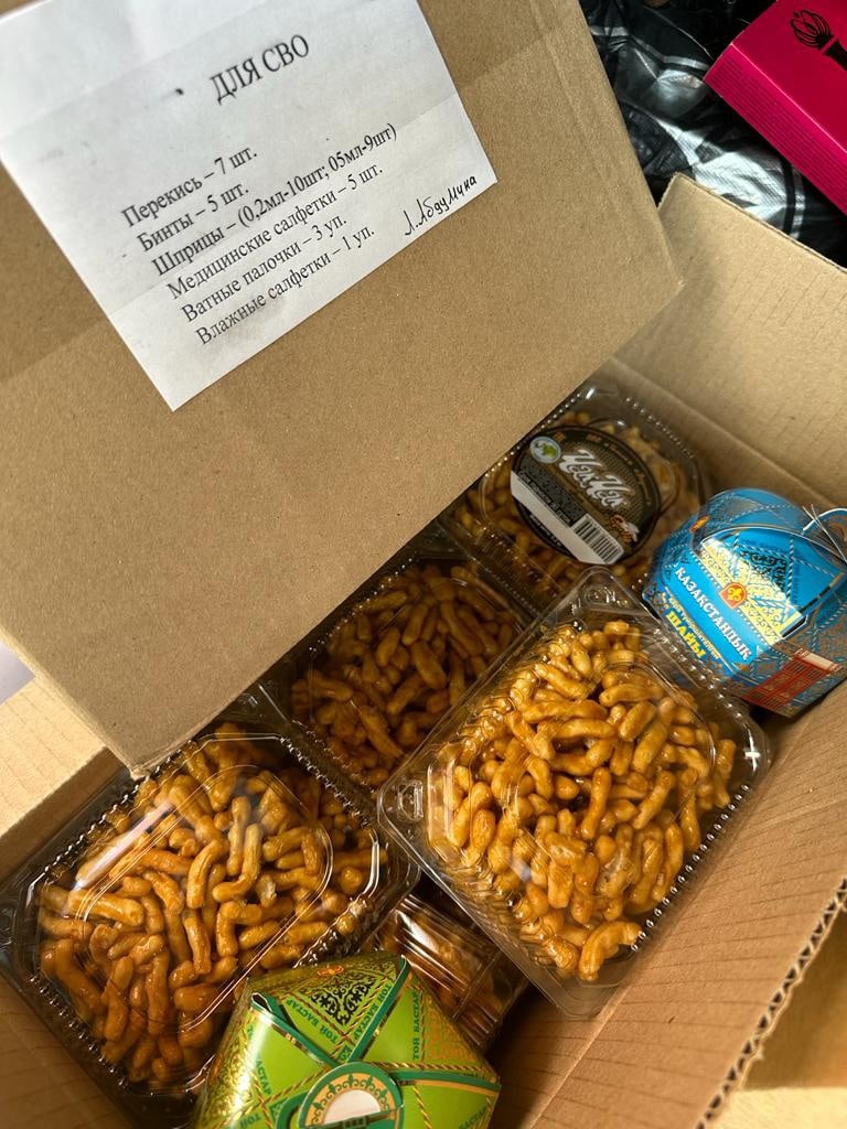 Благодарим две семьи Абдуллиных, Г. Алиеву, З. Идрисову и С. Албутову, а так же всех тех, кто помогал и продолжают помогать, но не хотят чтоб их называли. Благодарим юных активисток Аишу и Камилю, которые в пятницу как и в прошлые разы таскали коробки тяжелые в машину. Отдельная благодарность Зульфие Сямиуллиной, что именно она вновь в свой выходной вызвалась отвезти собранные гостинцы бойцам.