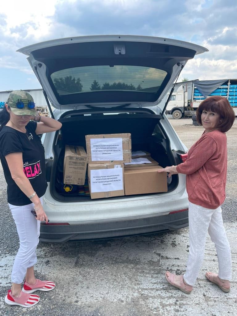 27 мая активисты РНКАТНО вновь отвезли собранные ими для отправки на СВО продукты, предметы для личной гигиены, разные вкусности, на склад в Дзержинск, откуда в воскресенье их забрала команда гумконвоя Тахира.