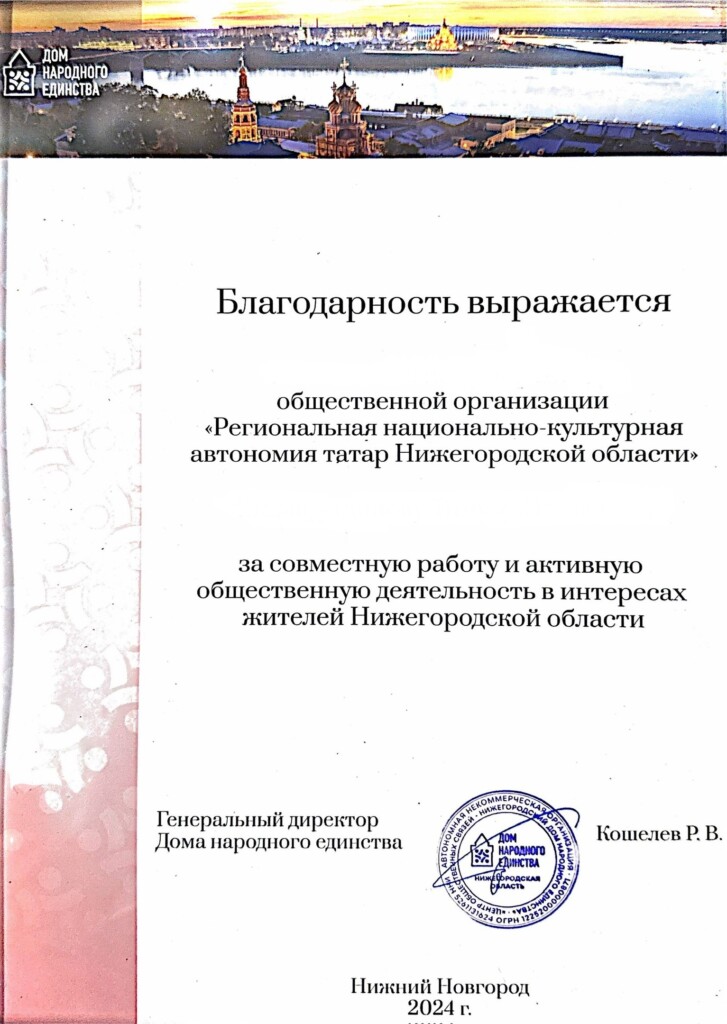 34 нижегородских НКО получили награды за достижения в 2024 году. Среди них Региональная национально-культурная автономия татар Нижегородской области.