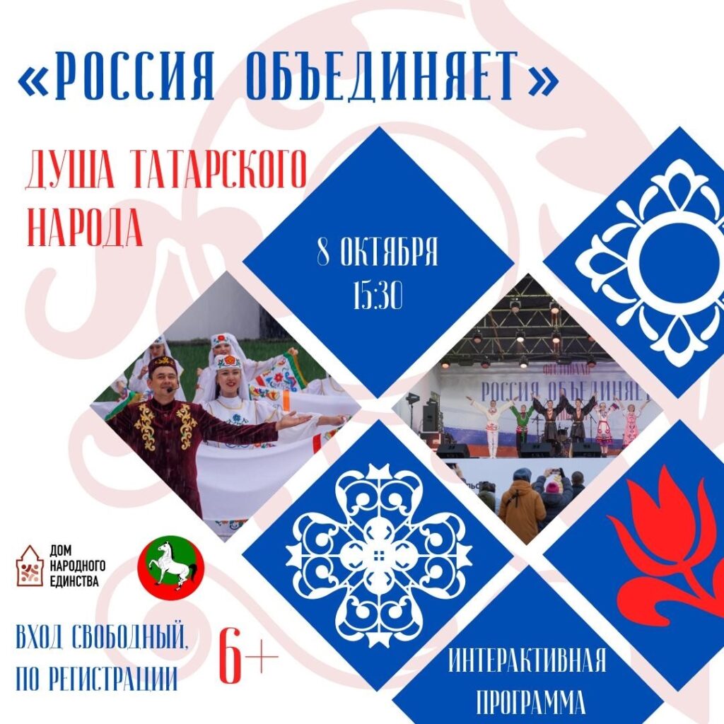 Актив РНКАТНО для всех желающих организует 8 октября в Доме народного единства праздник «Душа татарского народа» в рамках цикла «Россия объединяет».